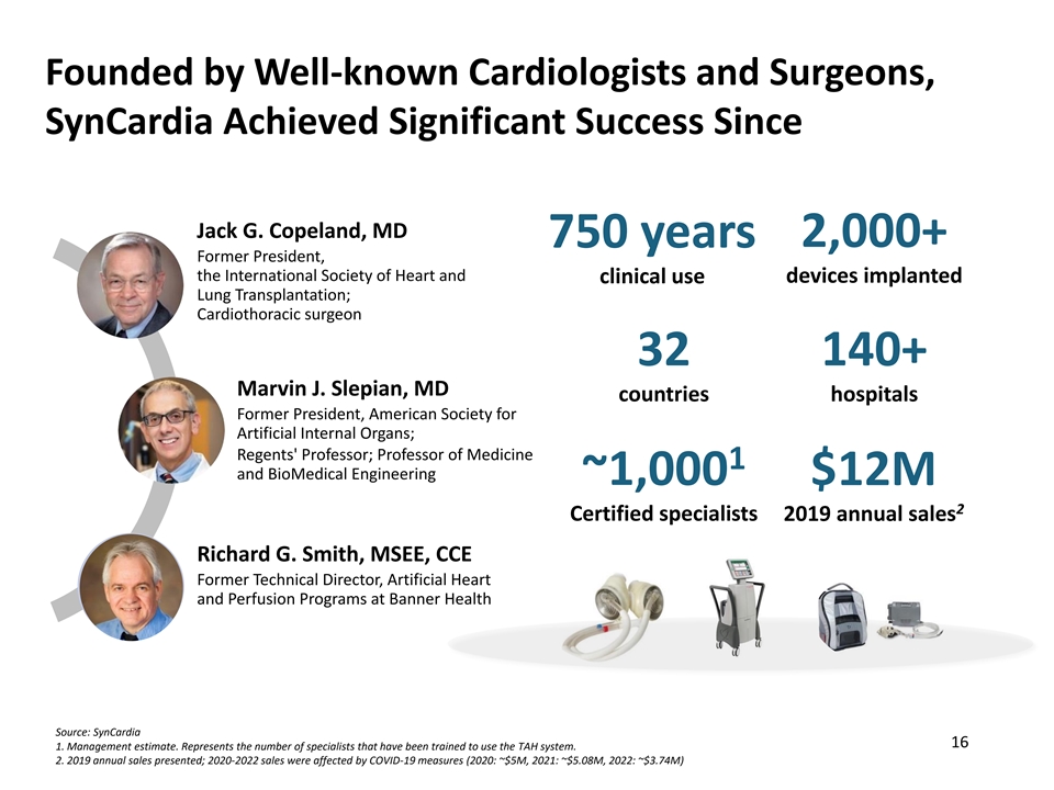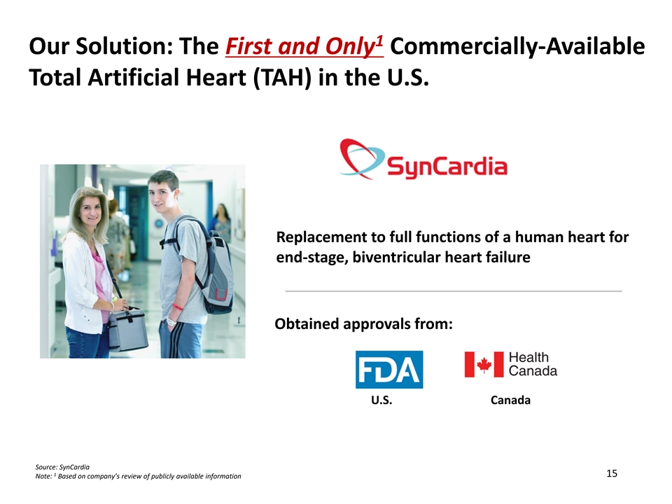 1 Our Solution: The First and Only Commercially-Available Total Artificial Heart (TAH) in the U.S. Replacement to full functions of a human heart for end-stage, biventricular heart failure Obtained approvals from: U.S. Canada Source: SynCardia Confidential 1 15 Note: Based on company’s review of publicly available information 15